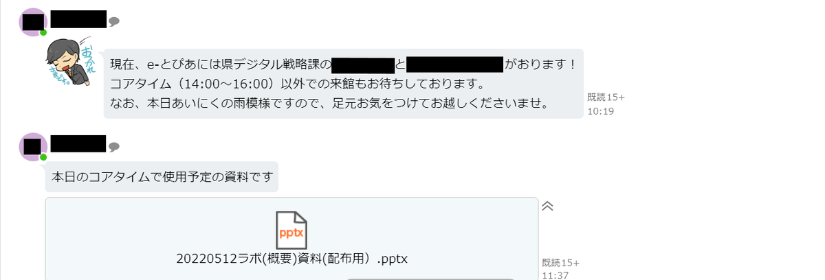 運用をはじめた頃は、県の職員が挨拶やラボの活動の様子の写真を投稿し、気軽に参加しやすい雰囲気づくりをしました。